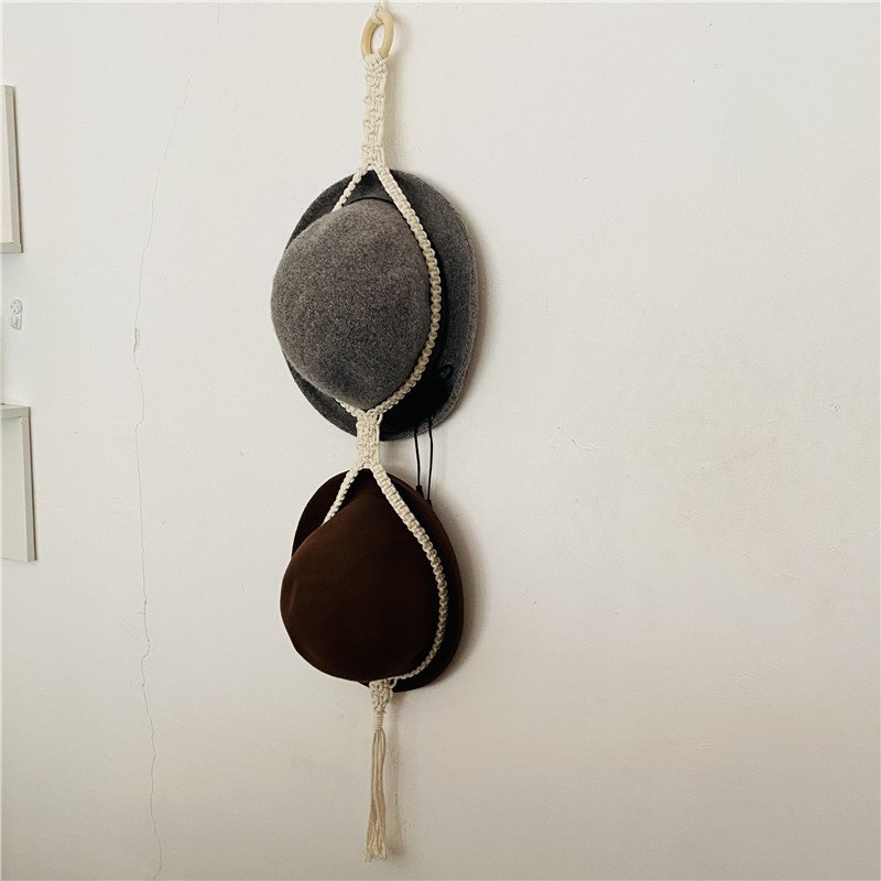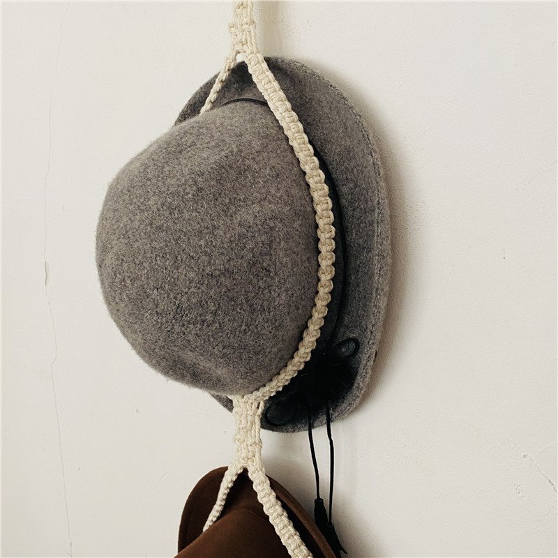 Made from high-quality cotton cord with exquisite knotwork, this macrame hat hanger showcases superior craftsmanship. The wall-mounted design ensures stability and optimal use of your space, without sacrificing style. Its neutral tones blend seamlessly with various interior designs, enabling it to complement everything from minimalistic aesthetics to vibrant boho themes. The combination of durability and beauty makes this hat stand a perfect solution for organizing accessories while adding a sophisticated touch to your room.